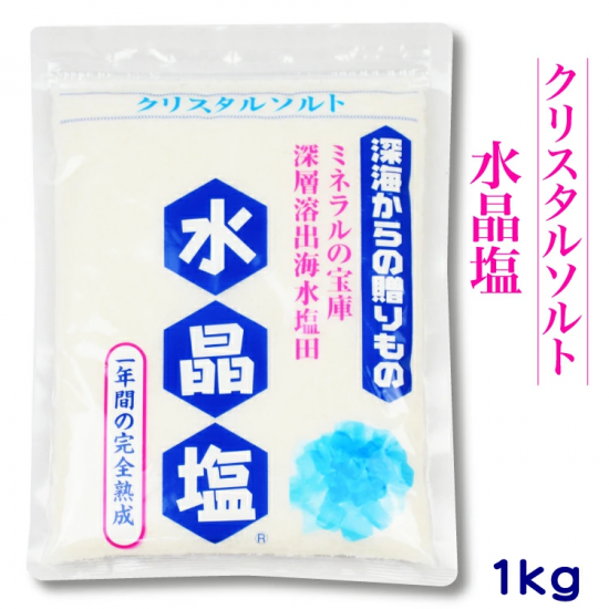 水晶塩は、海底700メートルから自然現象によって吹き上げているられた海水を塩田に導入し、たった3日間で塩の結晶を作り出す奇跡の塩です。この塩にワラで覆い、風雨に一年間さらされ、にがりが流し出された完全な熟成塩です。